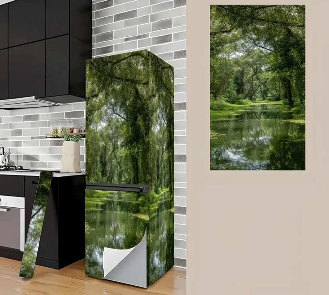 Upgrade your home decor with our Fridge wrap! These 2pcs large self-adhesive refrigerator stickers are easy to apply and leave no residue upon removal. Made from durable vinyl, they are perfect for your fridge, cabinet, wardrobe, kitchen, and bathroom. Enjoy a modern and sleek look with our Fridge wrap!