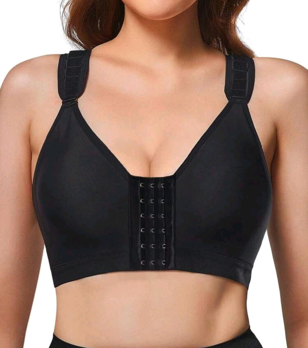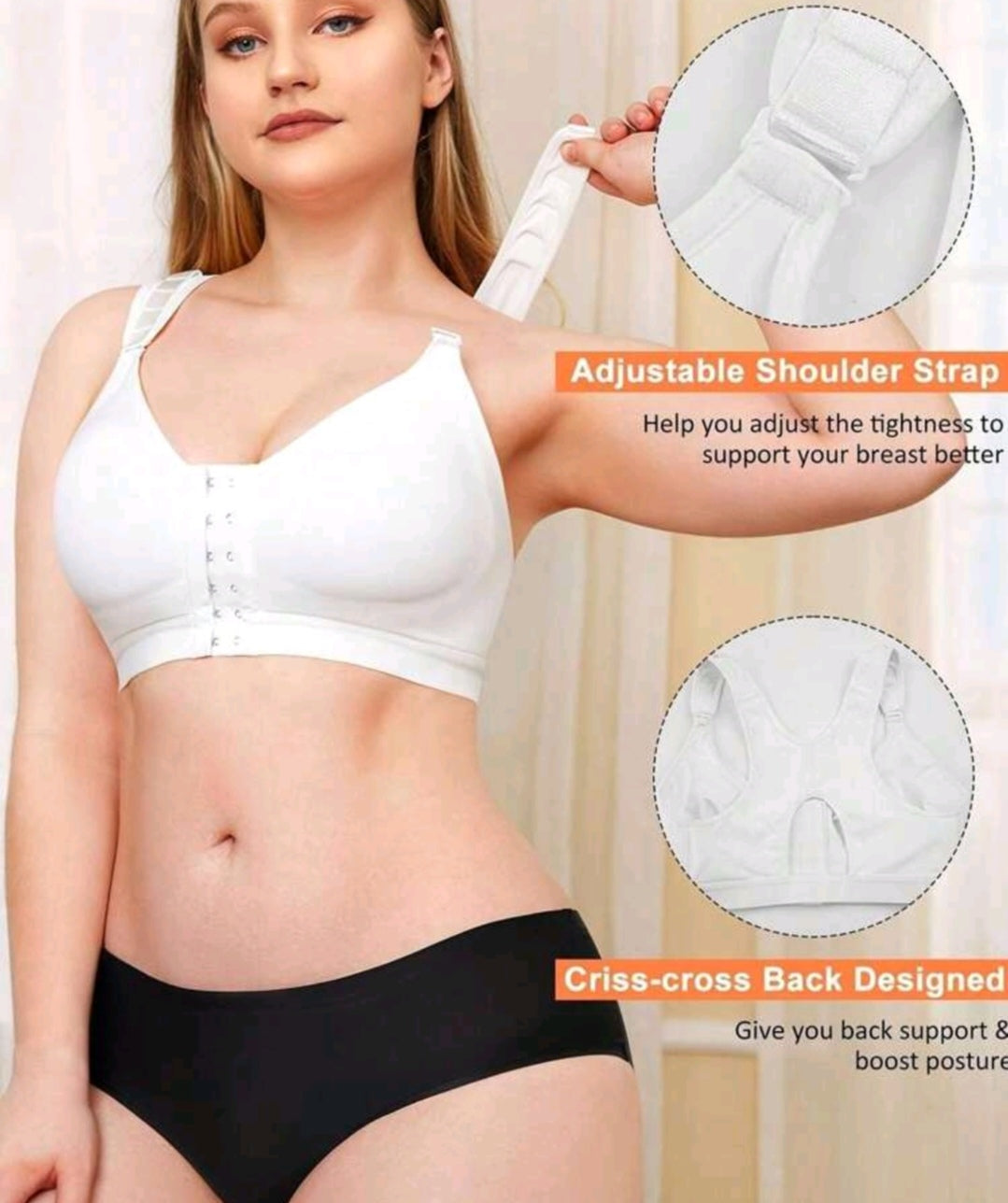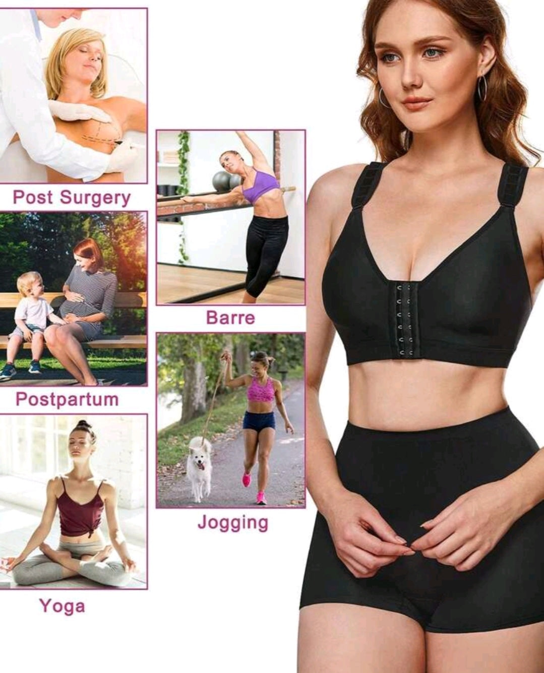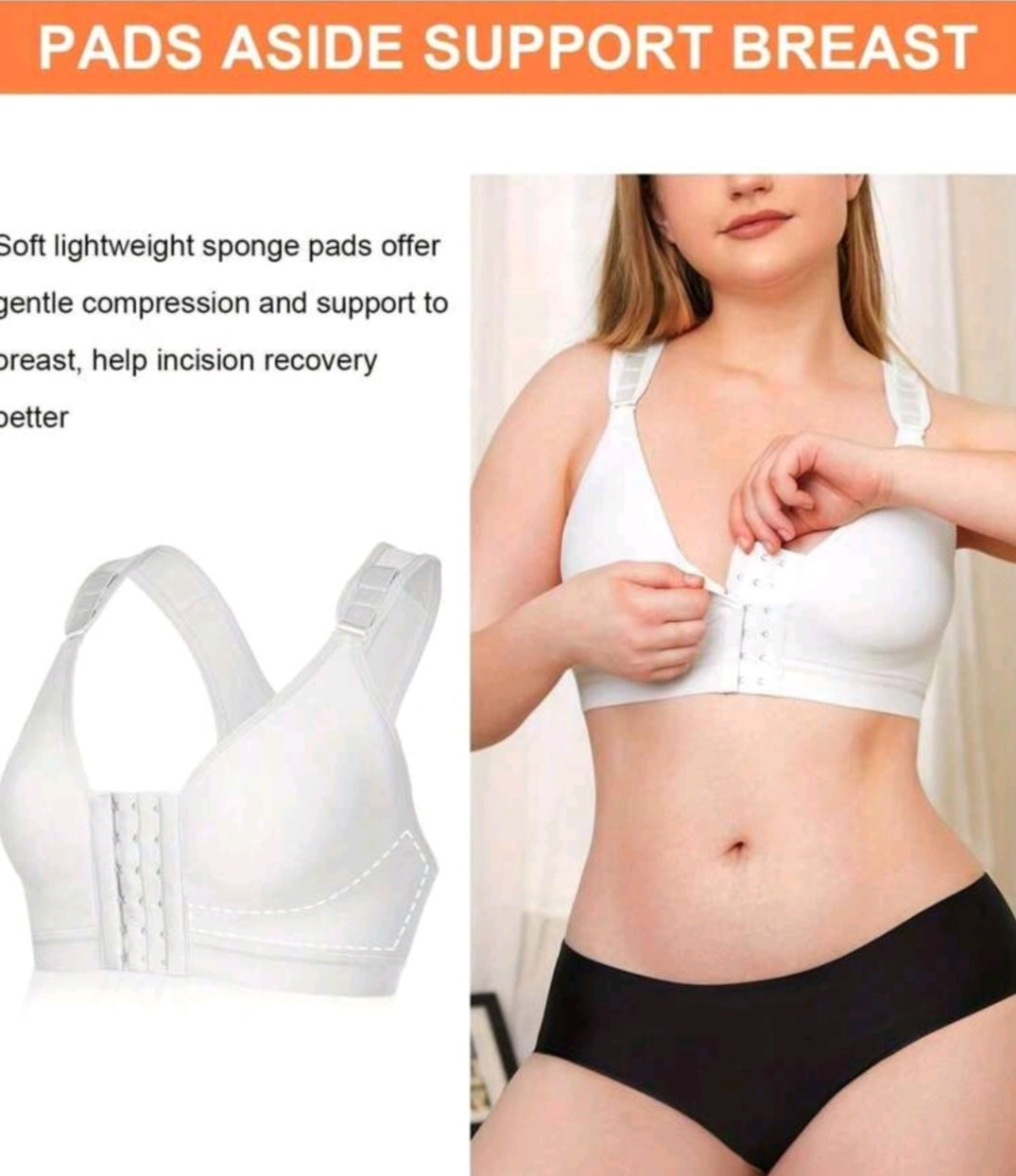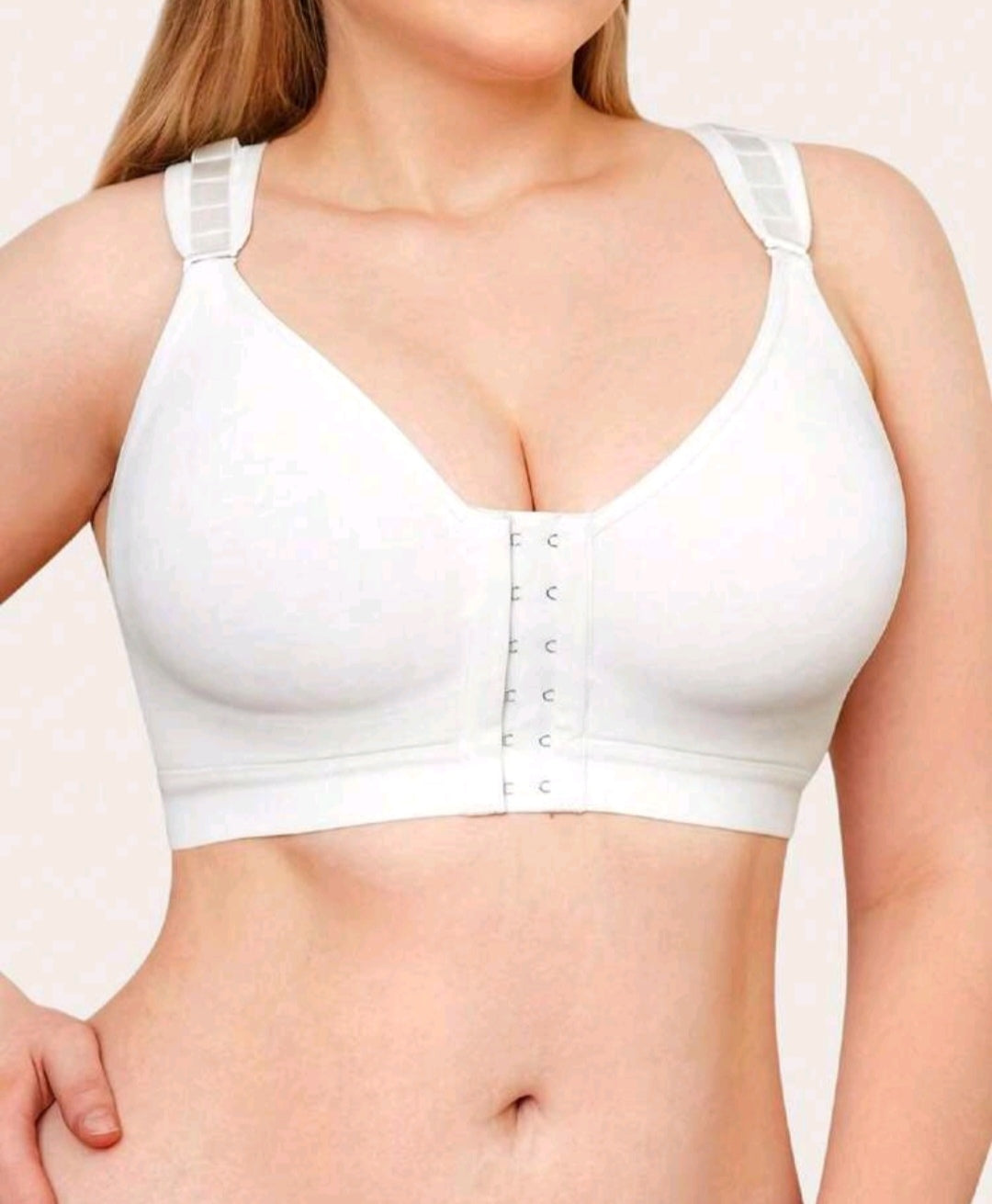This postoperative bra features an adjustable hook-and-eye closure for a comfortable and personalized fit, non-padded design for natural shape and air circulation, and back support for optimal healing. Designed for women, this bra offers both practical and aesthetic benefits for postoperative recovery.