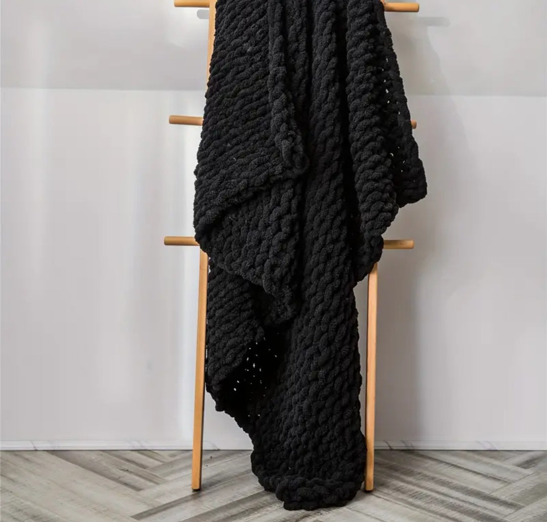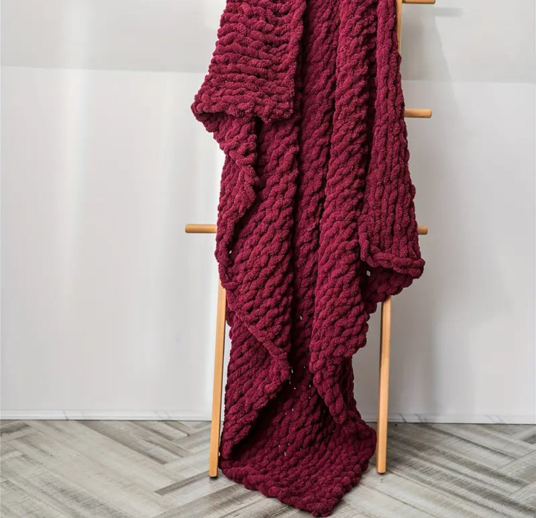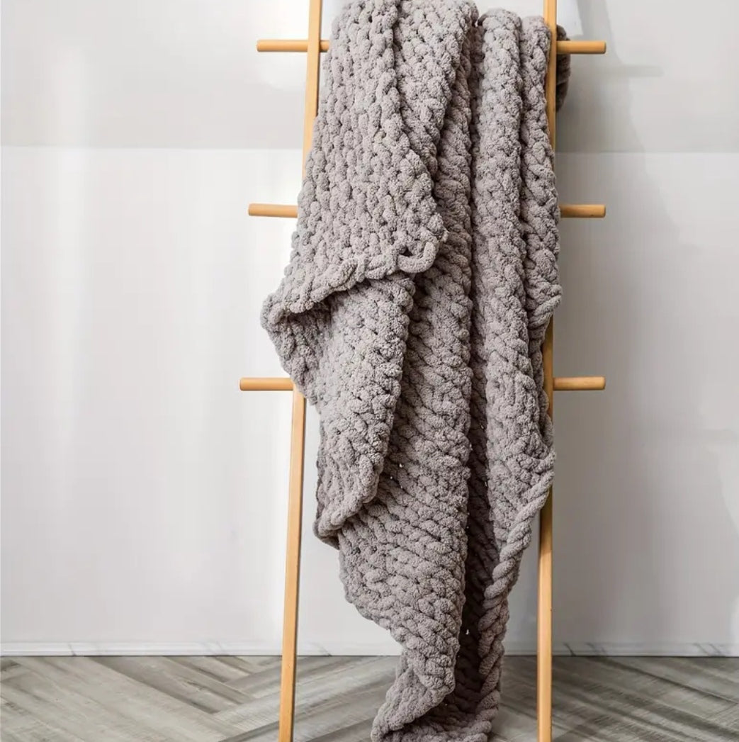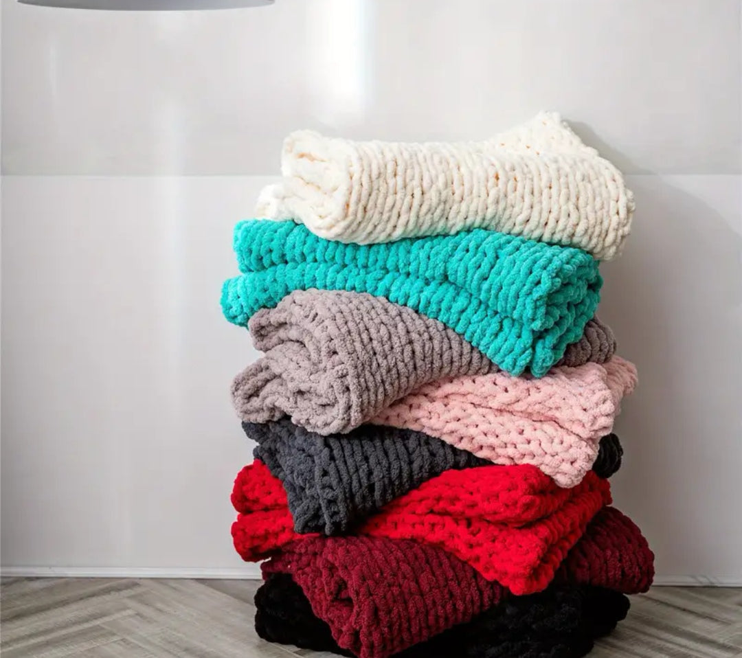 Enhance your home decor with our handmade Chenille Stick Knitted Blanket. Made with thick, soft and cozy yarn, this blanket is perfect for snuggling up on the couch, bed or when camping or traveling. It makes for a great gift for all ages and adds a touch of warmth and style to any room.