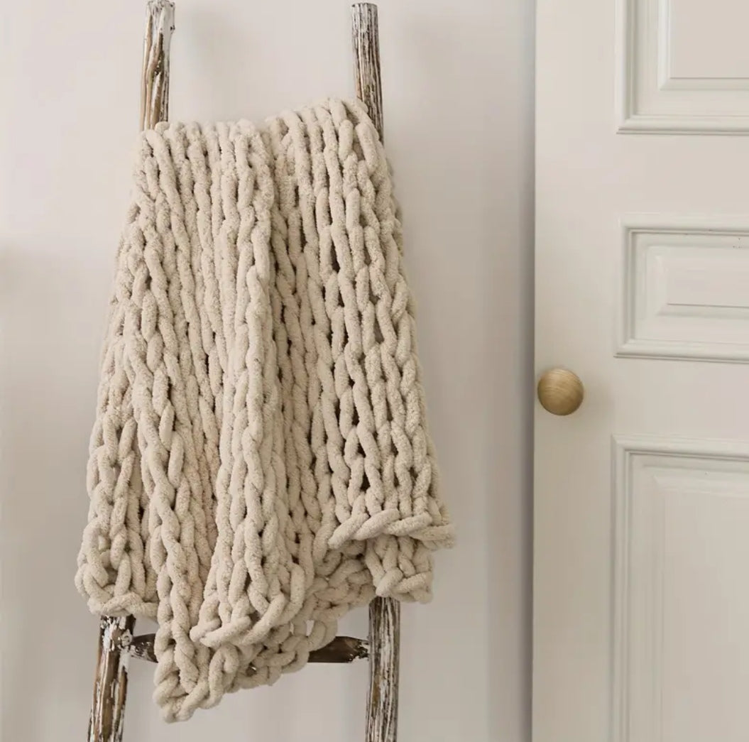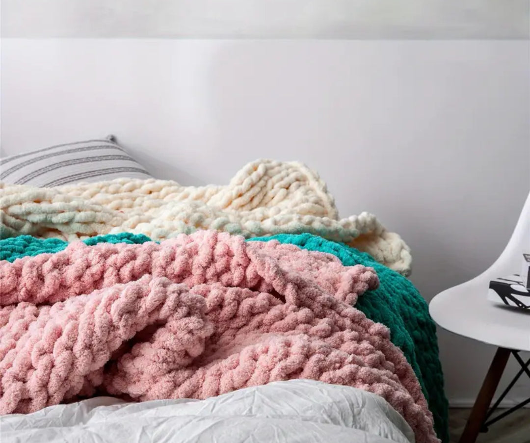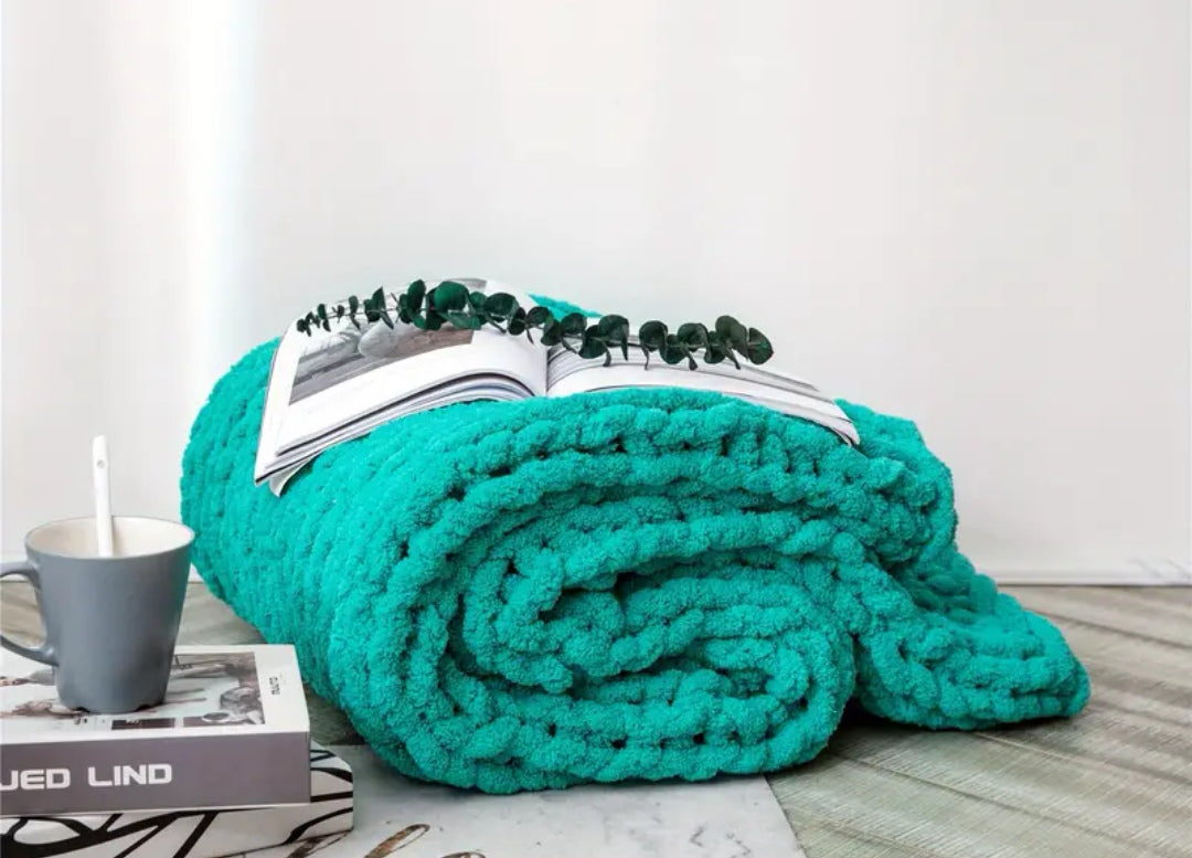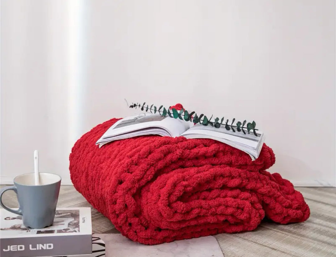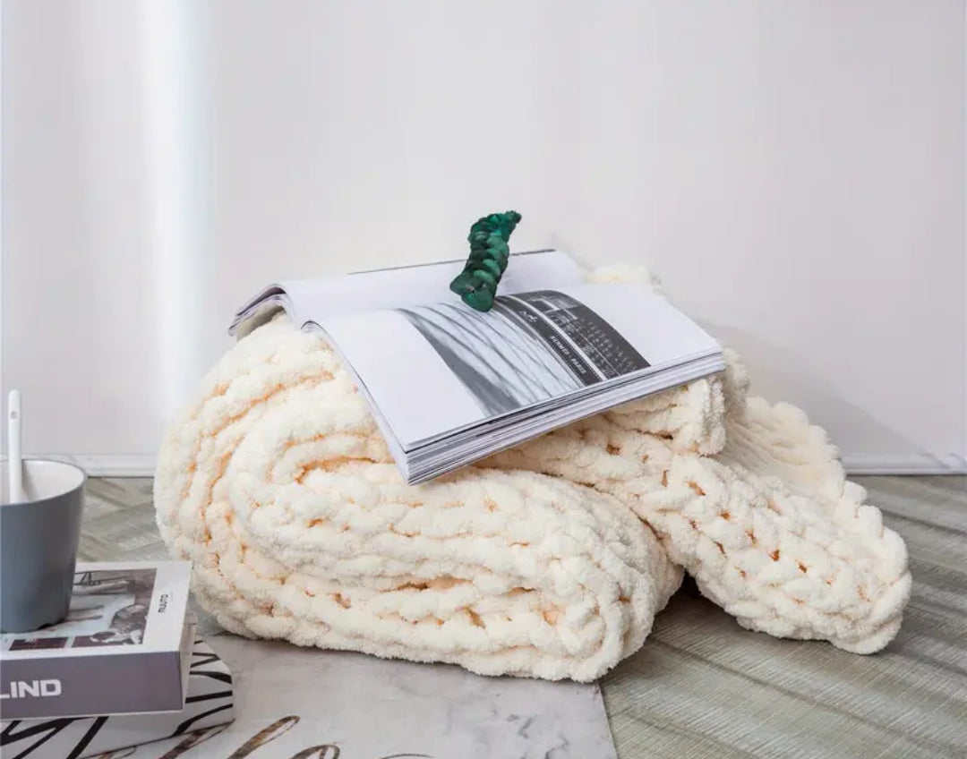 Enhance your home decor with our handmade Chenille Stick Knitted Blanket. Made with thick, soft and cozy yarn, this blanket is perfect for snuggling up on the couch, bed or when camping or traveling. It makes for a great gift for all ages and adds a touch of warmth and style to any room.