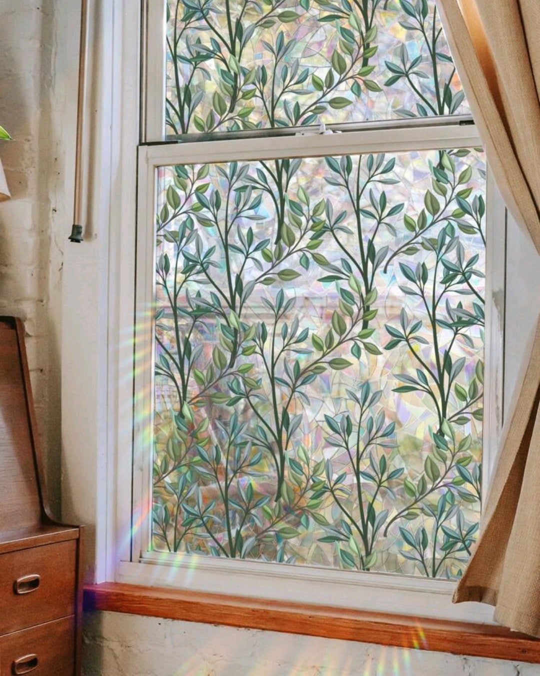Enhance privacy and add a touch of nature to any space with our self-adhesive window privacy film. The colorful leaves and branches design provides a decorative touch to your glass while keeping out prying eyes. Easy to cut and fit, it's a simple and effective solution for any window.