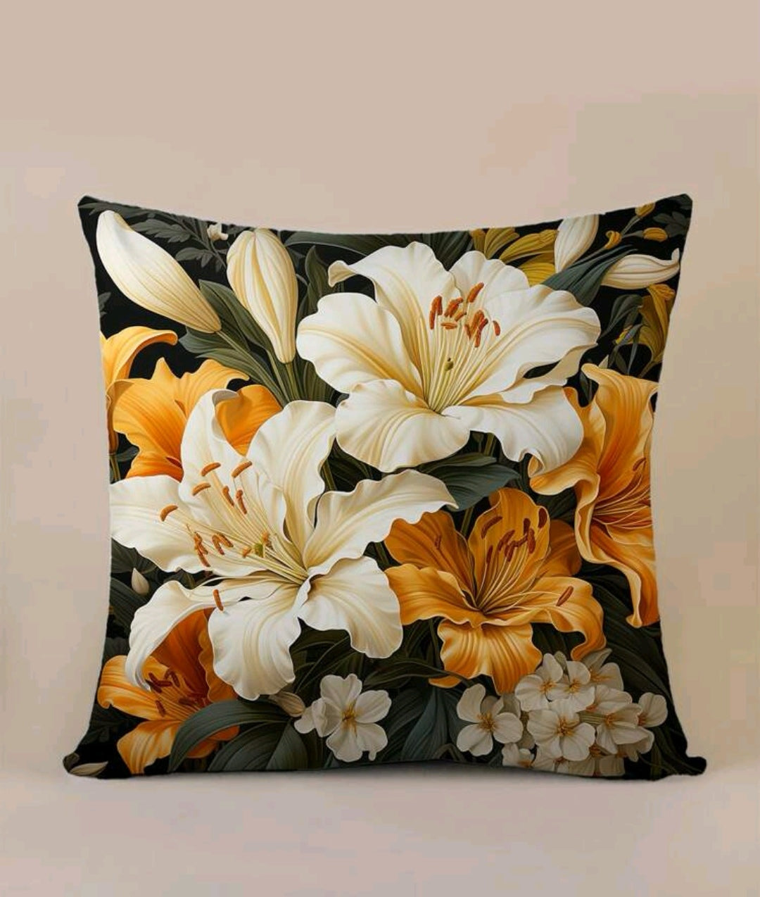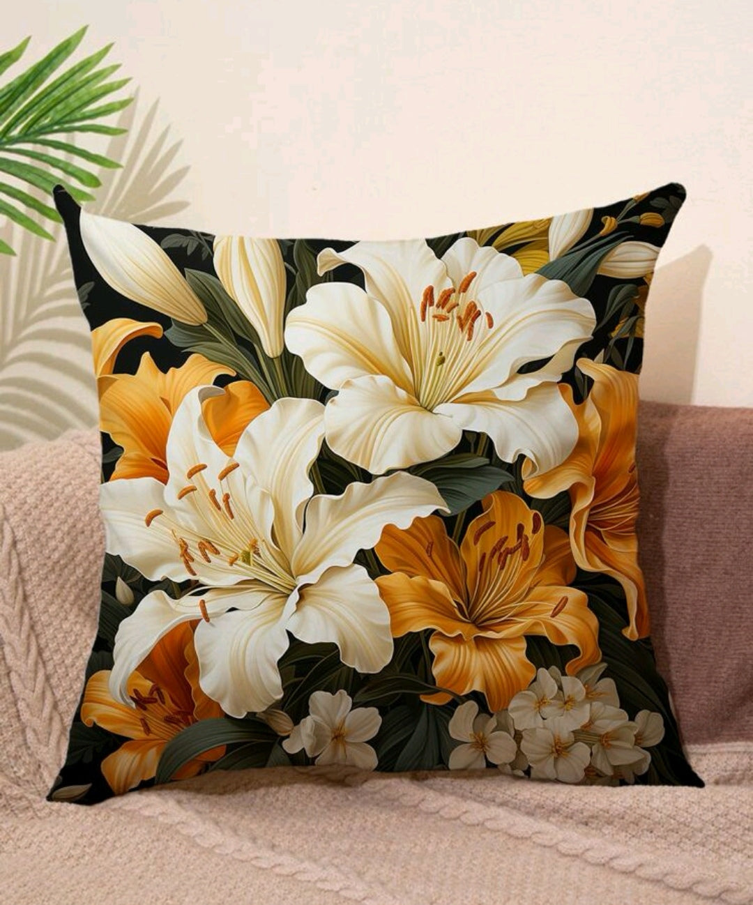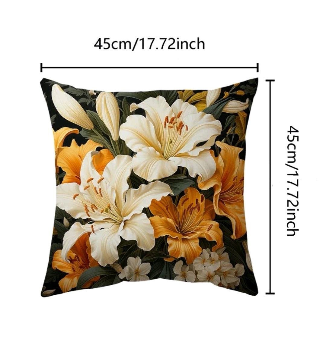 Add a pop of autumn color to your home with our Lily Flower Cushion Cover. Featuring a beautiful lily print on an olive green background, with a splash of burnt orange, this cover will add a touch of elegance to any room. Made with high-quality fabric for a luxurious touch.
