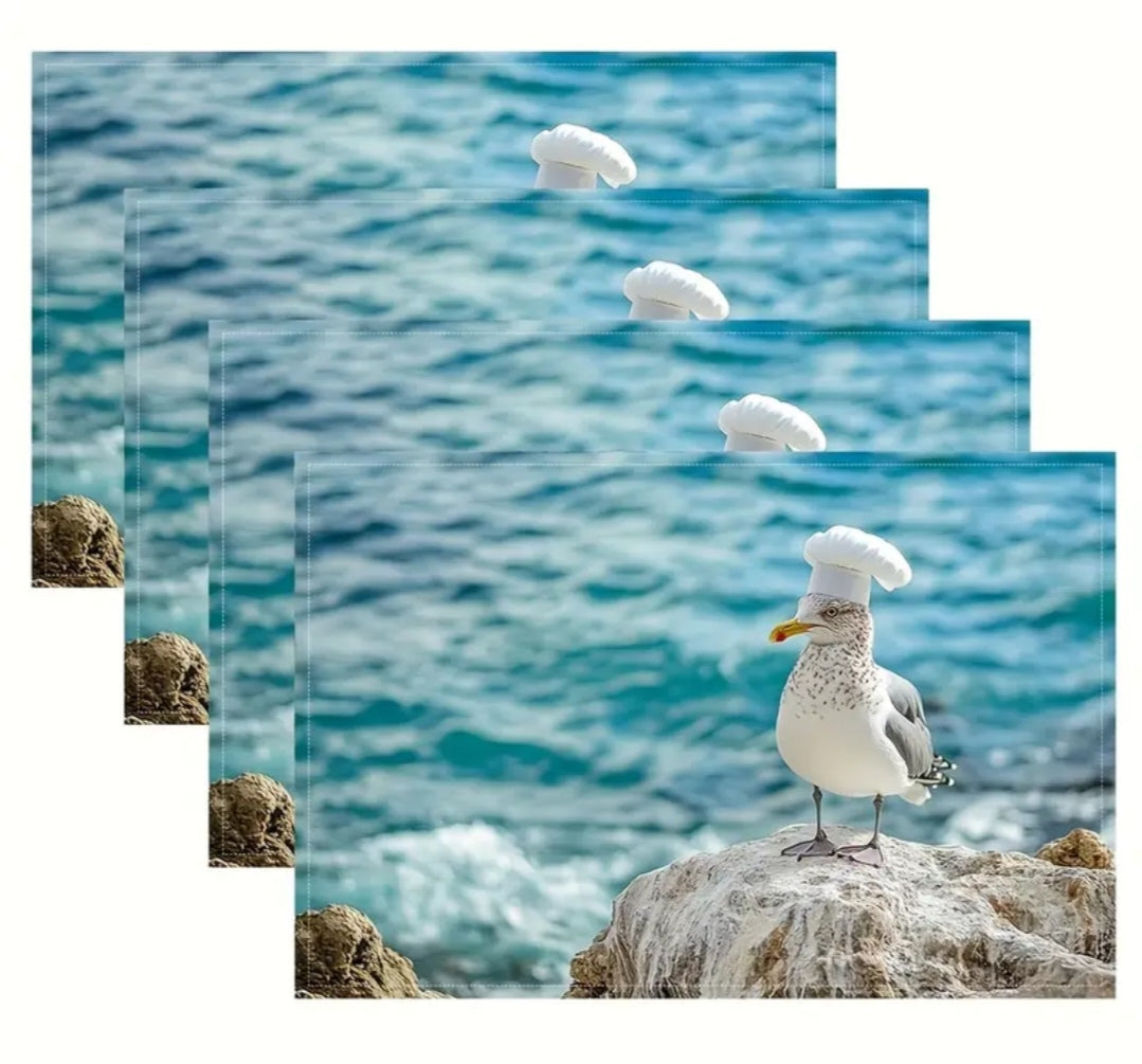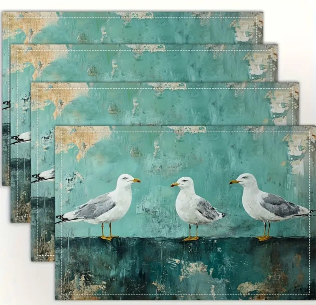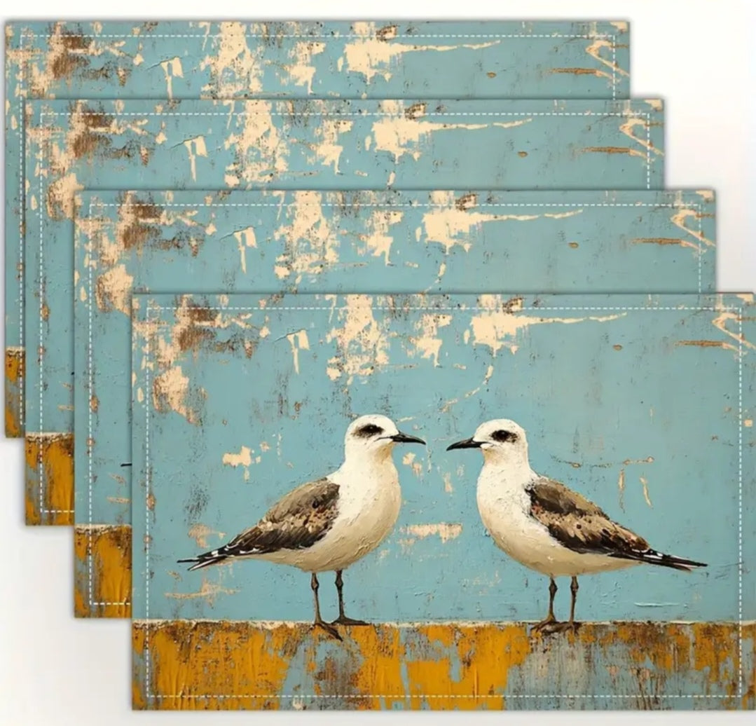 Enhance your dining experience with our set of 4 Seagull placemats. Made from rustic linen material, these 30.48x45.72 cm mats provide both style and practicality to your table setting. Protect your surfaces while adding a touch of seaside charm.
